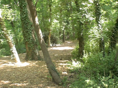 The wooded area is right next to the bridge. Picture by Eric S. Martin, all rights reserved.